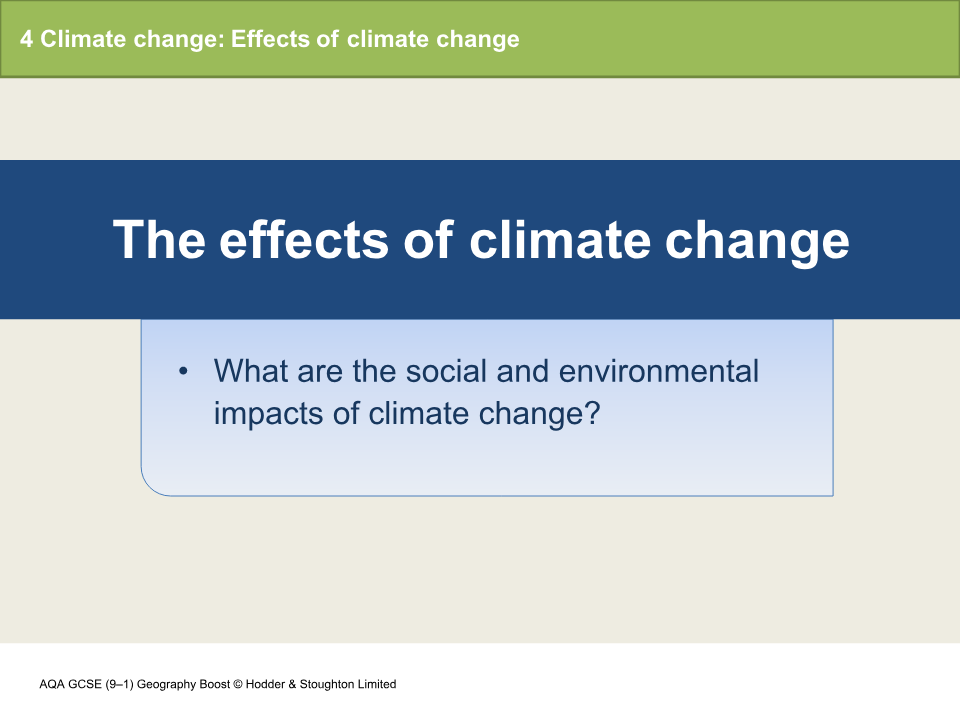 Impacts of climate change - Climate change - AQA - GCSE ... Impacts of climate change around the world · sea level rise will affect 80 million people · tropical storms will increase in magnitude (strength) · species in ... Climate change and global warming - Climate change - AQA ... The global climate has been changing since time began and will continue to change into the future. The Earth's temperature has fluctuated in the last few hundred years. However, since around 1950...